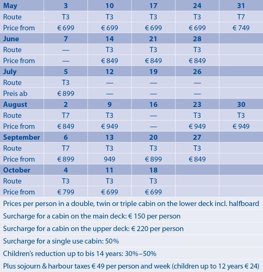 Note: We endeavour to operate the route as described above. However, due to local circumstances and current weather conditions, changes to the route may be necessary.