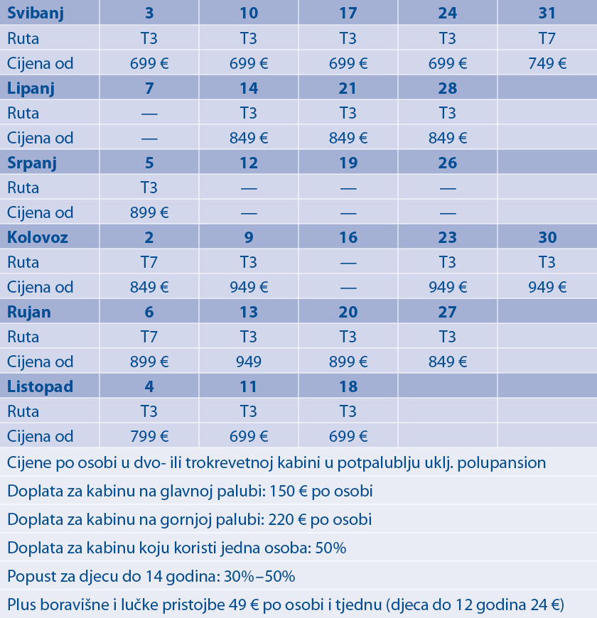 Napomena: Nastojimo ploviti rutom prema planu kapetana Dina i gore opisanoj. Međutim, zbog trenutačnih vremenskih uvjeta, možda će biti potrebne promjene rute.