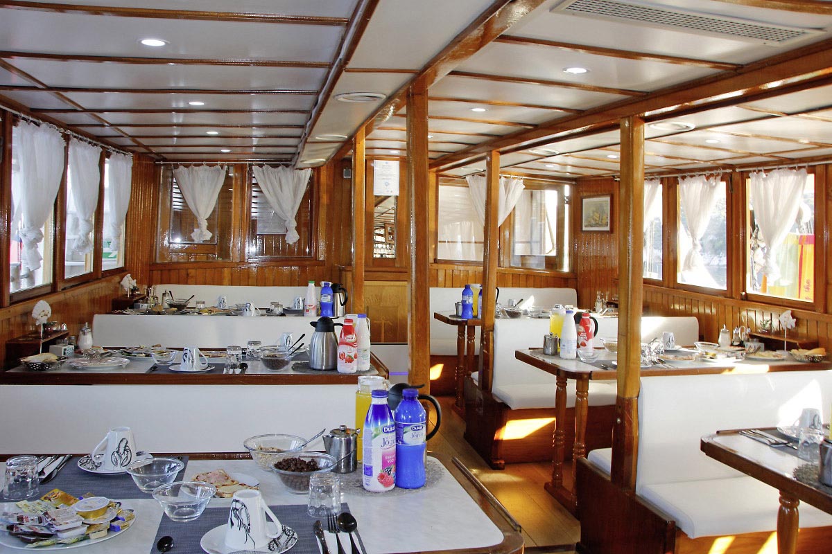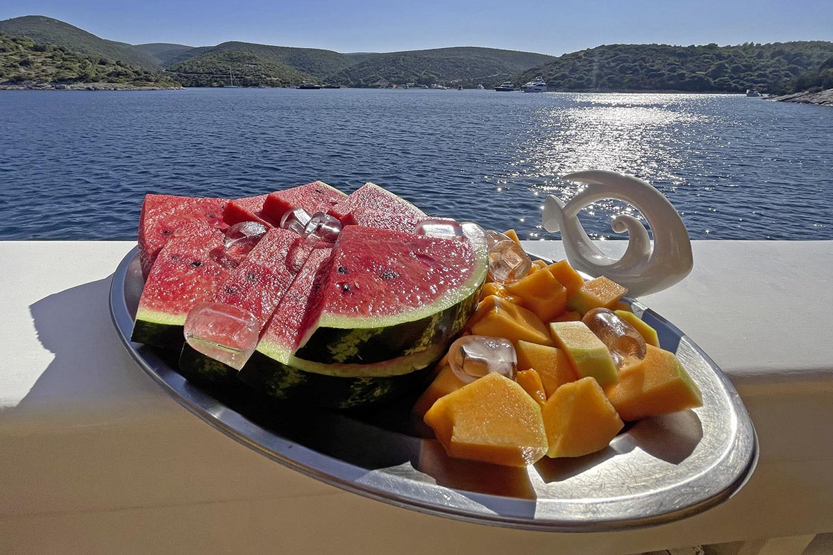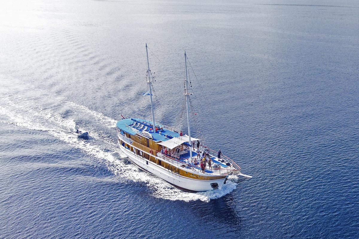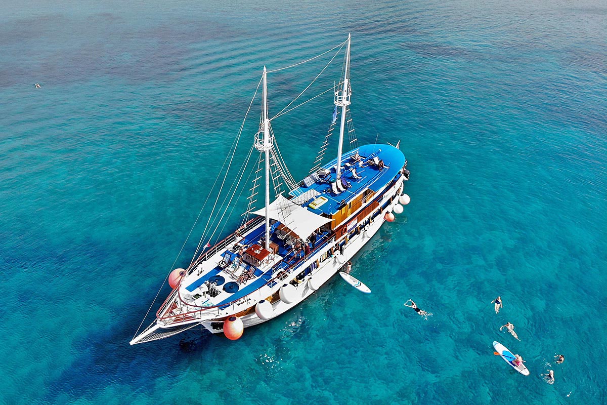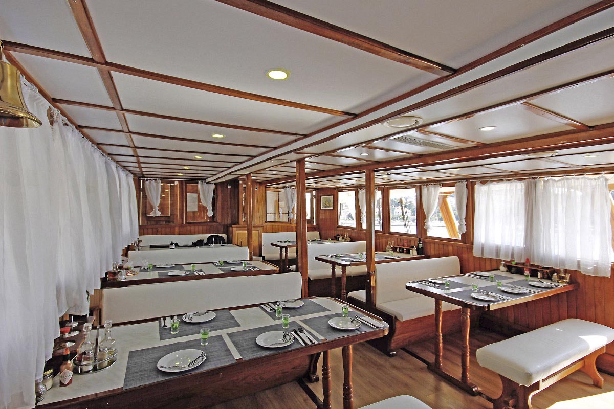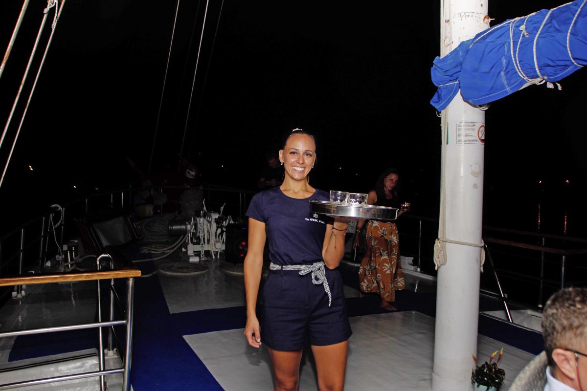 Naši gosti cijene opuštenu atmosferu na tradicionalnom drvenom brodu koji se ne može usporediti s modernim željeznim brodovima. Tijekom plovidbe možete se sunčati na jednoj od dvije sunčane palube, zajedno sjediti za velikim stolom ispred kormilarnice ili se prepustiti valovima da vas lagano ljuljaju u visećim stolicama na natkrivenoj krmi. U pauzama za kupanje u najljepšim uvalama dalmatinskih otoka, neki se gosti odvaže na hrabri skok s gornje palube, plutaju morem na jednom od luftića kojih ima na brodu ili se okušaju u stojećem veslanju (stand-up paddling). A ako ste nakon toga žedni, Larisa će vas razmaziti ledenim pivom, čašom vina ili koktelom.