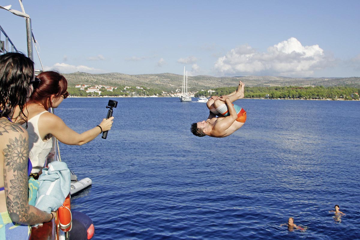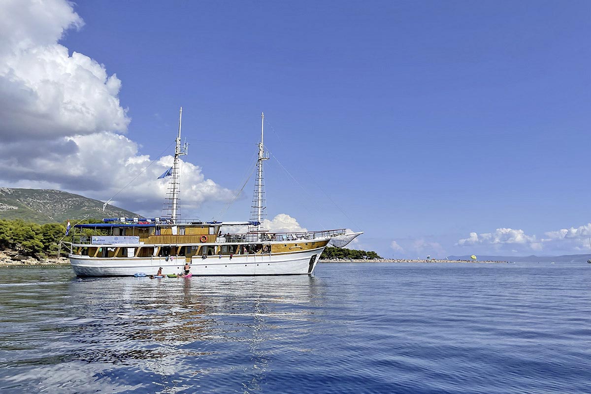 Ukrcaj u trogirskoj luci između 13:00 i 14:00 sati. Nakon ukrcaja doček uz piće dobrodošlice, upoznavanje s posadom i informacije o putovanja. Tijekom ruka na brodu, dižemo sidro i krećemo prema jednoj uvali na otoku Čiovu, gdje imamo priliku uživati u našem prvom kupanju u kristalno čistom moru Jadrana. Odredište našeg prvog dana krstarenja je Split, glavni grad Dalmacije. Glavna atrakcija Splita je stari grad koji je izrastao iz Dioklecijanove palače. U kompleksu, koji je dio svjetske baštine, nalaze se 1700 godina stare rimske zidine, kuće, crkve, kafići… mjesta puna šarma! Nakon vođenog razgleda grada ostatak večeri je slobodan za šetnju starim gradom. Noćenje u splitskoj luci.