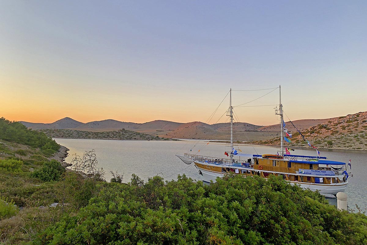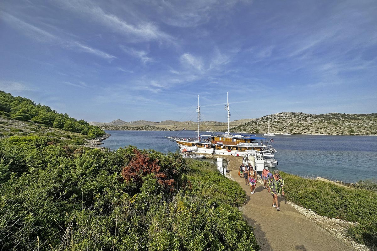 Nakon dobra dva sata vožnje stižemo do Nacionalnog parka Kornati. “Posljednjeg dana stvaranja Bog je htio okruniti svoje djelo, pa je od suza, zvijezda i daha stvorio Kornate”, napisao je irski pisac George Bernard Shaw. Oni su najveća i najgušća skupina otoka na cijelom Mediteranu – 147 nenaseljenih otoka, otočića i hridi, od kojih 89 pripada nacionalnom parku, protežu se u dužini od oko 35 km. Danas se vozimo većim dijelom nacionalnog parka i prvo se usidrimo u jednoj od prekrasnih uvala na otoku Kornatu s kristalno čistim morem, gdje ćemo napraviti dužu pauzu za kupanje i ručak. U poslijepodnevnim satima krećemo prema otoku Levrnaka, gdje se vezujemo na malom molu. Samo 200 m od pristaništa s druge strane otoka nalazi se plaža Lojena s pješčanim dnom. Noćenje u uvali Levrnaka.